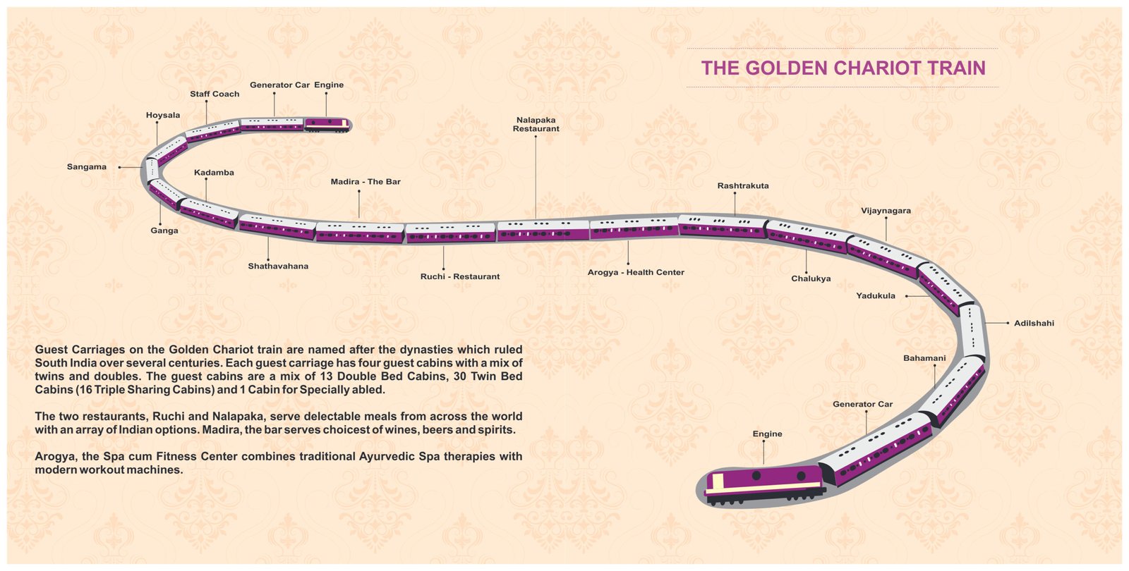 THE Golden Chariot TRAIN IS OWNED by Karnataka Toursim Development Corporation & OPERATED by Indian Railways Catering and Tourism Corporation Ltd.(IRCTC) – INDIA.